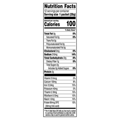 Quaker, Instant Grits, Original, 1.0 oz, 12 Packets - Walmart.com Nutrition facts. Refer to the product label for full dietary information, which may be available as an alternative product image. ... Quaker Instant Grits delivers the classic creamy texture of traditional grits. Enjoy a hot bowl with breakfast, or as a snack or savory side dish. Quaker Instant Grits also provide a good source of calcium and iron.